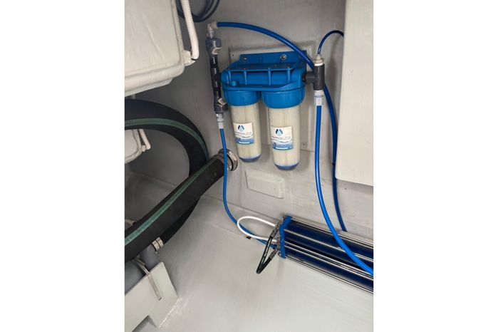 - Twin primary Racor water separator/fuel filters, secondary engine fuel filters